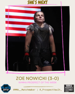 Since turning professional in June 2024, Zoe has competed under prominent regional promotion Invicta FC. Her professional record reflects continued success with victories via unanimous decisions and submission. Nowicki represents the Scorpion Fighting System, and her tactical adaptability is steadily raising her profile in the flyweight ranks as she continues to accumulate experience and challenge higher-level opponents.